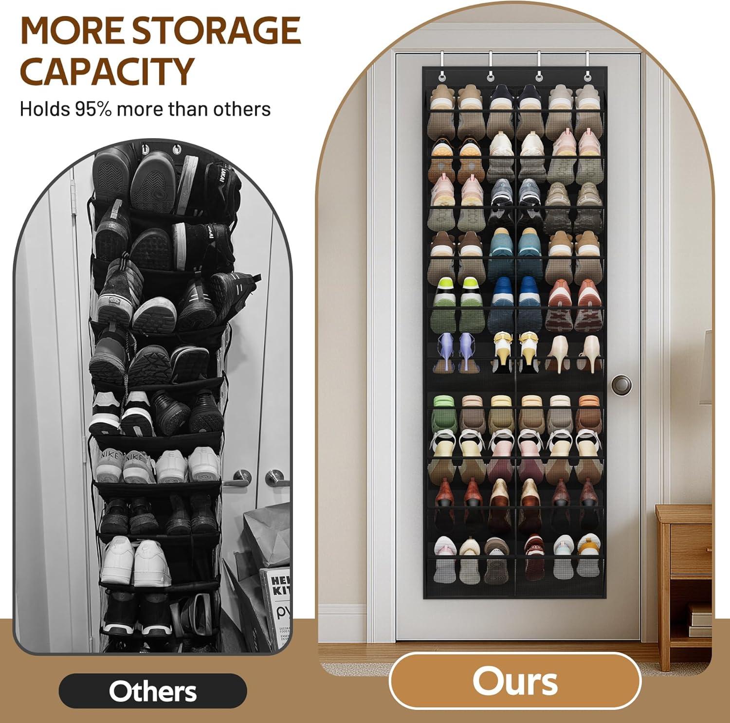 【4 Metal Hooks & Easy Door Mounting】 4 strong, smooth-gliding hooks fit ANY standard door effortlessly. This hanging shoe storage organizer is ideal for closets, bedrooms, or tight spaces. This wall shoe organizer door hanger can keep your entryway tidy and your mood bright. (Door Width < 1.65”)