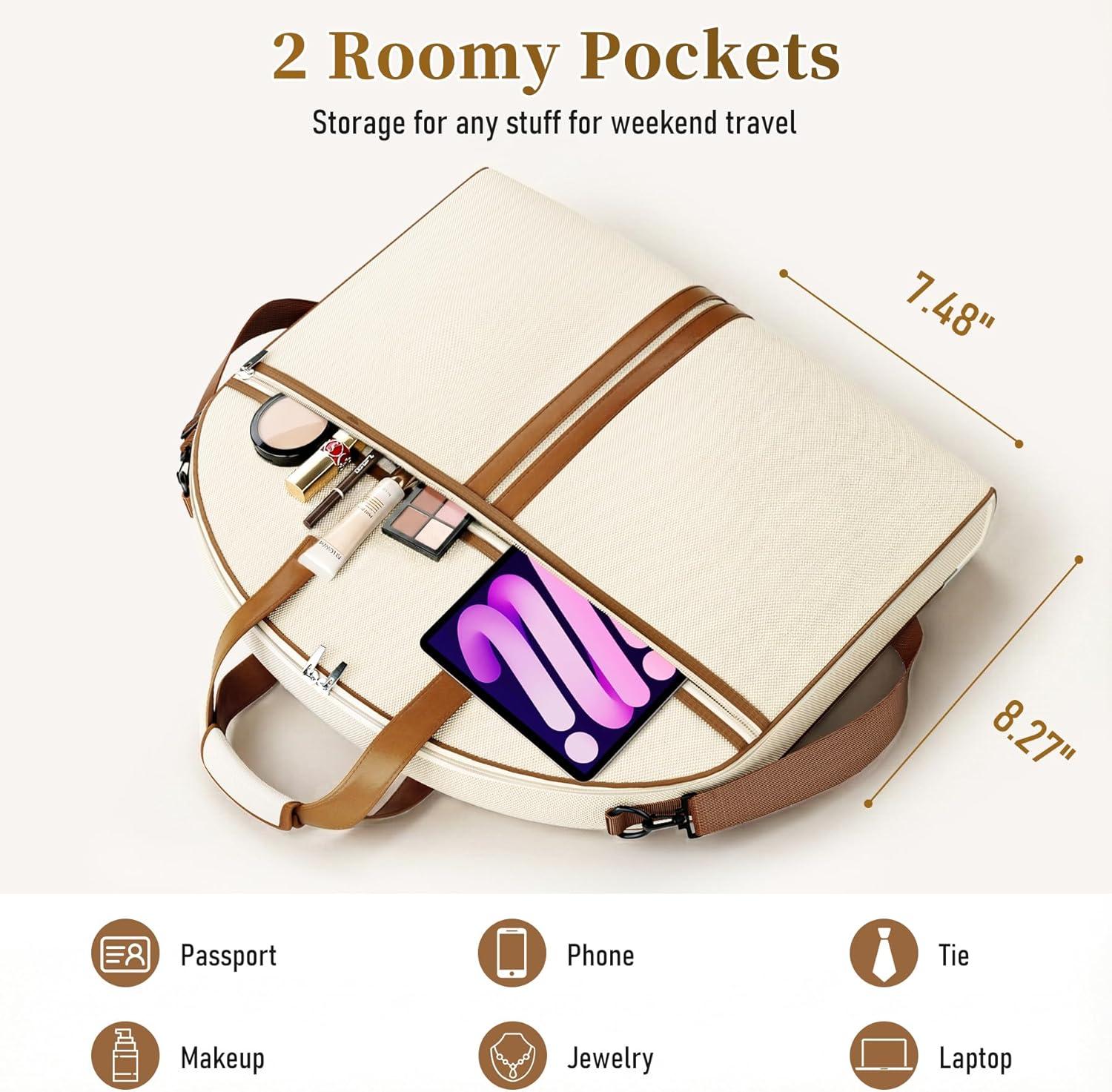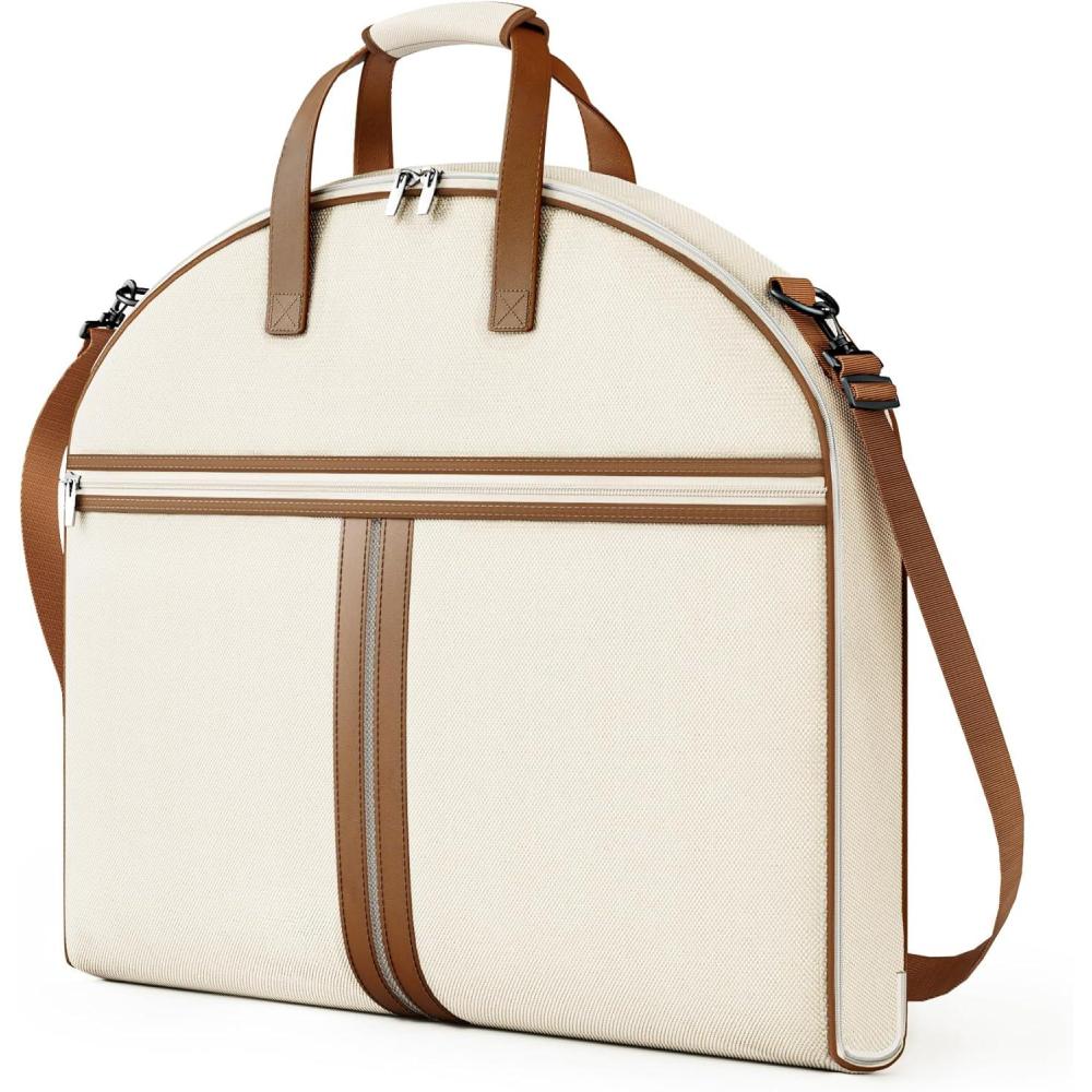 MISSLO Carry on Garment Bags for Travel for Women 56" Foldable Dress Bag with Large Pockets Bag Suit Luggage Garment Bag with Shoulder Strap for Business, Wedding, Hanging Clothes, Beige(Beige)