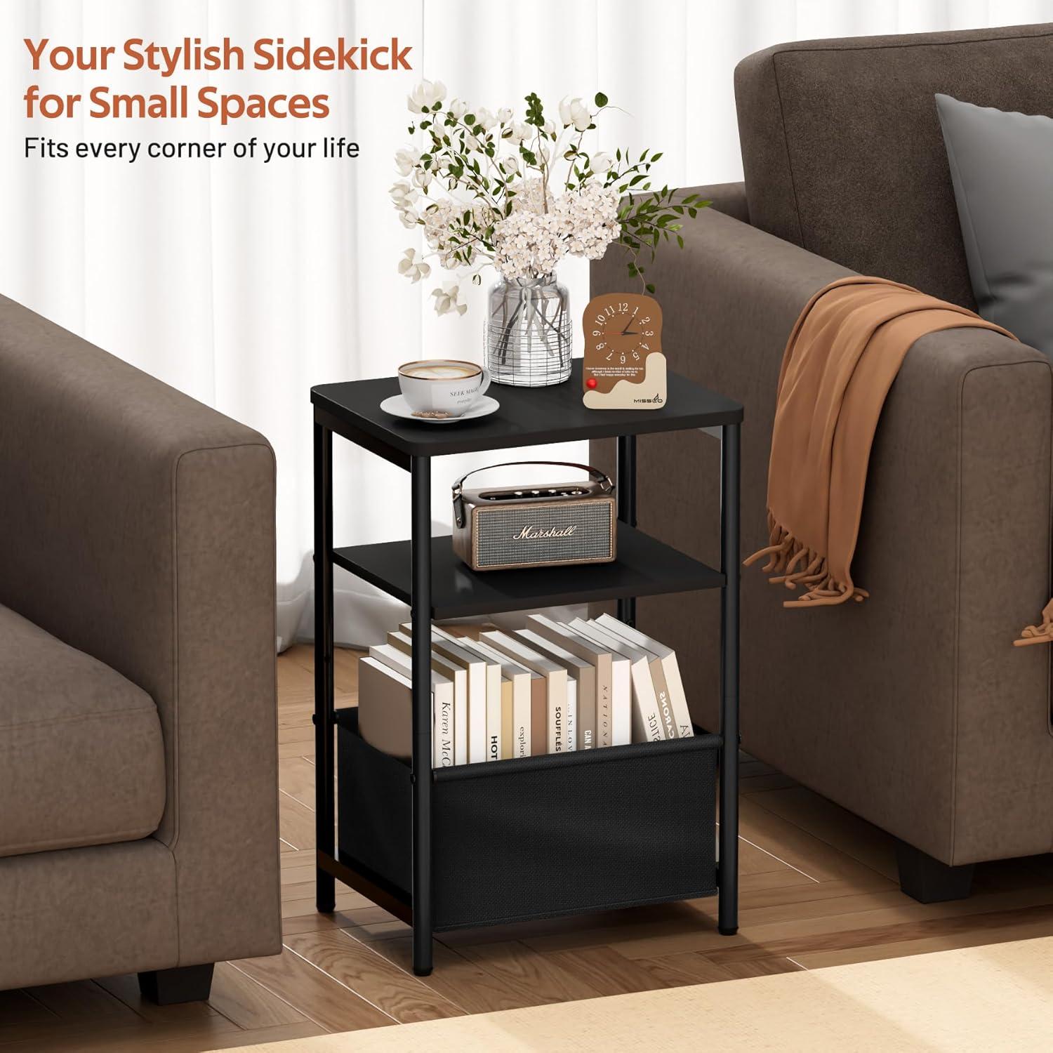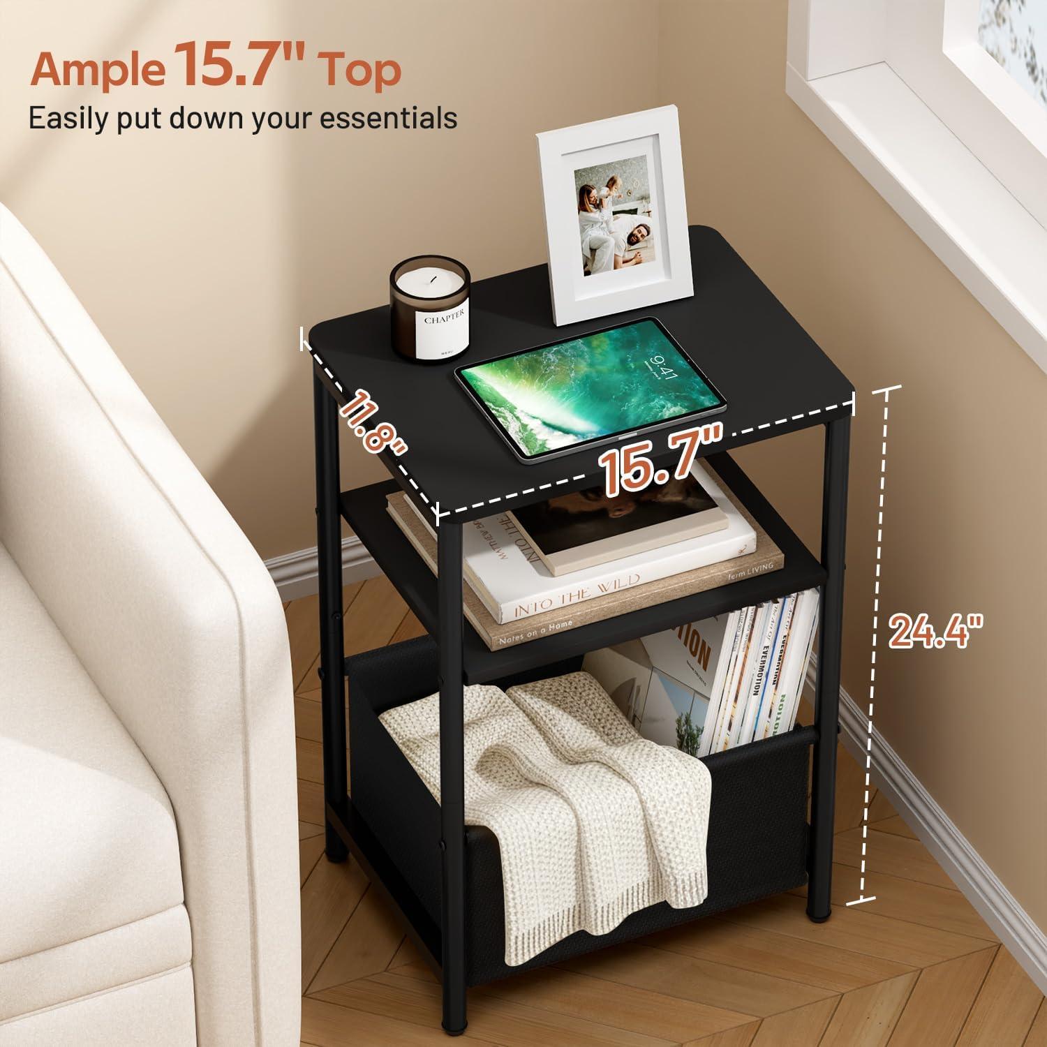 【Spacious Square Desktop】2 tiers 15.7″ wide surface provides ample space for a lamp, books, your drink, and nursing essentials. Everything stays within arm’s reach, making this sofa side tables bedroom excellent for late-night feedings or relaxing with a beverage without cluttering your space