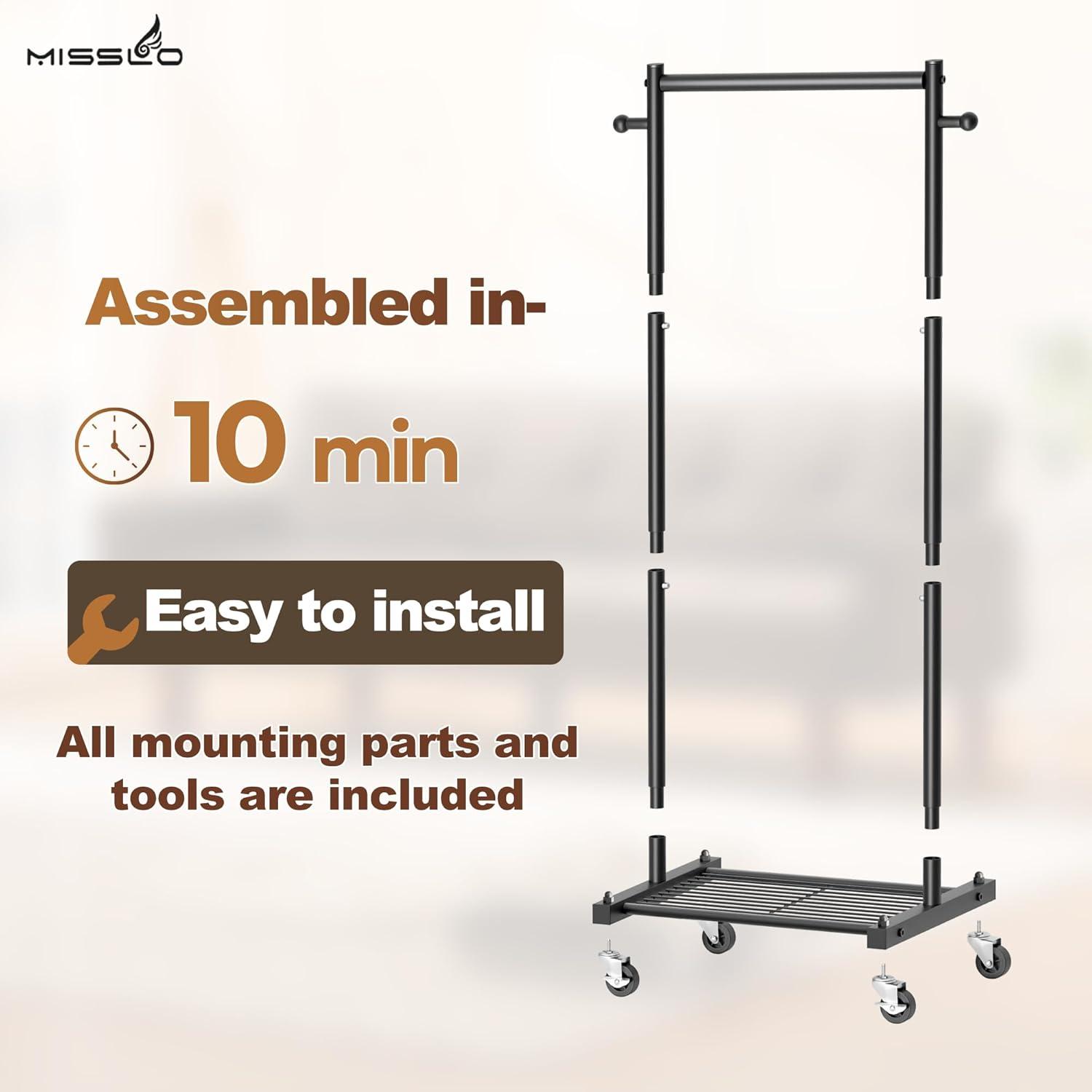 【Easy Assembly and Disassembly】 This portable clothes rack includes clear instructions and tools for a 10-minute setup, so you can assemble the freestanding clothes racks right away. The small clothes rack for small spaces is also easy to disassemble for car travel